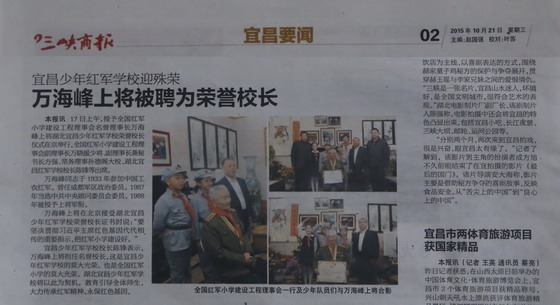 万海峰上将受聘为湖北宜昌少年红军学校荣誉校长