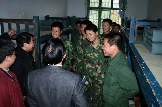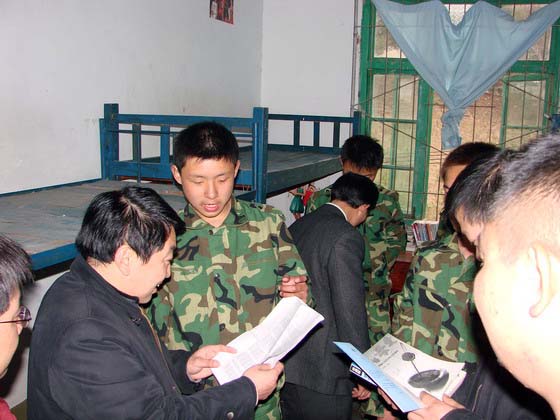 五位博士来自三峡大学,其中胡骏修、陈金明两位为教育学博士,陈军、慎先进、王海琴为法学博士。这五位博士饶有兴致地参观了学校办公场所、行军宿营车、学生宿舍。观看了学生训练、学习的场面。并和学生们在一起进行了交流,特别是了解到这些孩子以前都是学校难教,家长难管的调皮孩子,可是到了我们学校以后变得懂事了,有礼貌了,感到有些不可思议。然而当这些博士和陈锋校长在一起交流探讨时,他们又明白,感到学校能够把这项有意义的事业发展到今天是多么的不容易和了不起。几位博士都是法学、教育学方面的专家,但是几位博士却都异口同声地说陈锋校长才是真正的专家。陈锋校长说:“在择差教育这个领域,我为孩子,为家长,为社会做了一些事情,但还远远不够。我校虽然创办才几年时间,但已经得到了社会的认可和全国家长的信任,大家称我为专家,择差教育任重而道远,我感到肩上的责任重大……”
