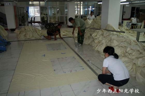 四川汶川大地震发生以后,帐篷一直是救灾的紧缺物资。该企业接到民政部门要求在6月20日前完成6000顶救灾帐篷的生产任务后,迅速改变了原定的生产计划,停止一切外贸订单,全厂近200名职工连夜加班加点,全力以赴为灾区生产帐篷,上千平方米的加工车间一片忙碌,即使这样,人手还显不够。我校得知这一情况后,发动全体学员为支援灾区出力,同学们个个积极踊跃报名参加,学校精心挑选了20名学员赶赴企业做义工,帮助企业尽快完成救灾帐篷的生产任务。我校的志愿者们在车间连续工作了3个小时,虽然天气炎热,工作强度较大,但每个学员工作都很认真,从他们的脸上可以看到他们对灾区人民的一片赤诚之心。