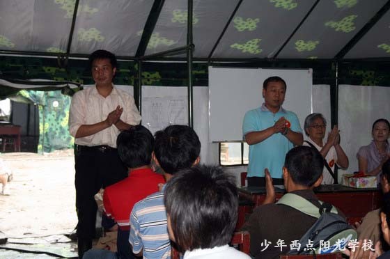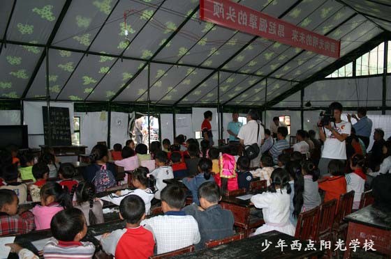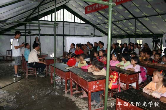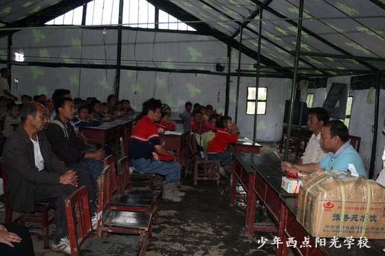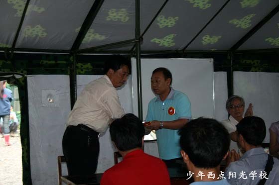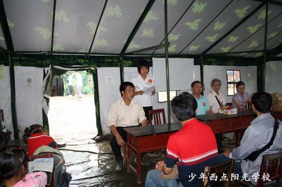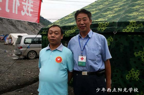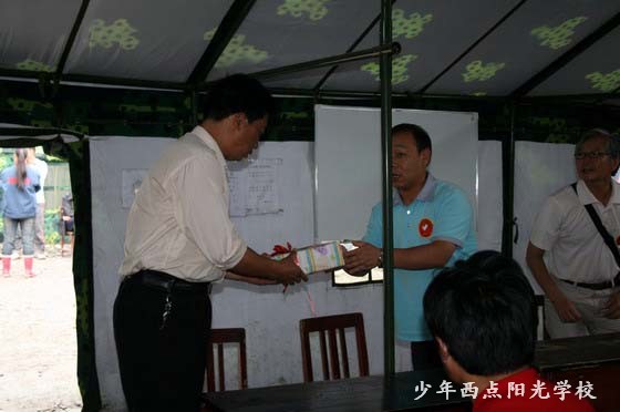 2008年6月19日上午,陈锋校长一行冒雨来到北川县兴川希望小学。在帐篷里举行了“手拉手,心连心”捐赠仪式,当陈锋校长把5000元现金递给该校熊庭筠校长时,熊校长眼眶湿润了,连声说“谢谢!谢谢!”这是该校收到的第一笔给教师的捐款。