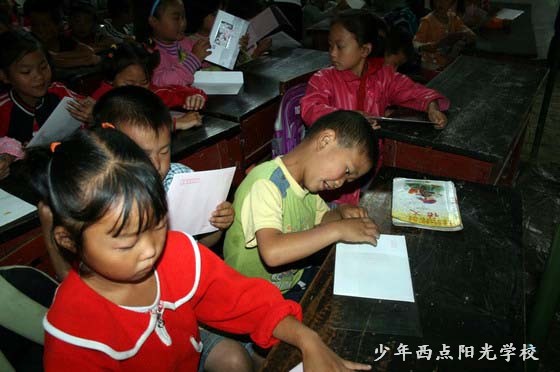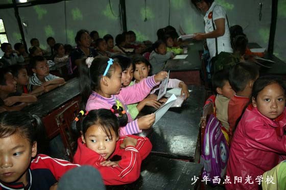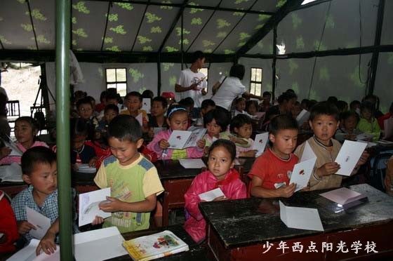 在捐赠仪式上,同行的五峰县教育局副局长、三坪希望小学校长宋芳蓉给该校学生捐赠了文具,她同时表示,今后将给该校捐赠数千册图书。我校学生代表王乙力、陈彧凡向在场的每位同学转交了我校的学员写给灾区同学的爱心卡。