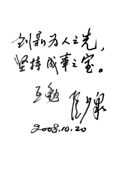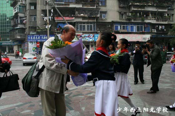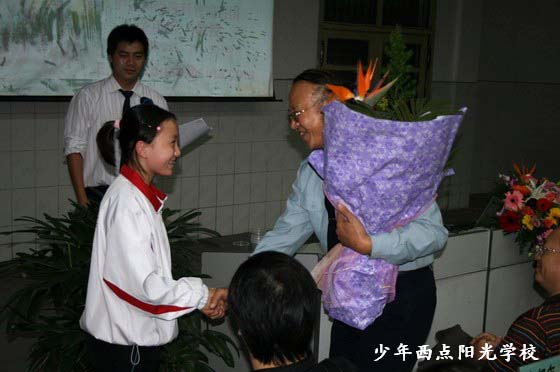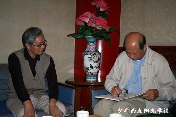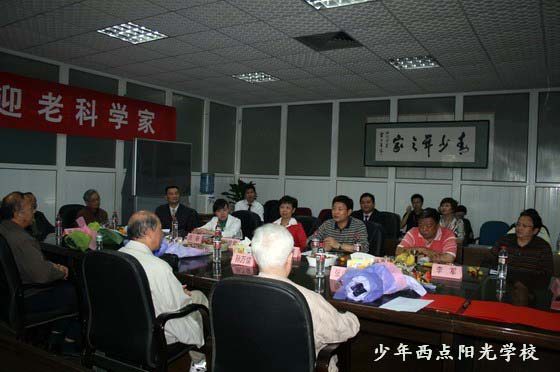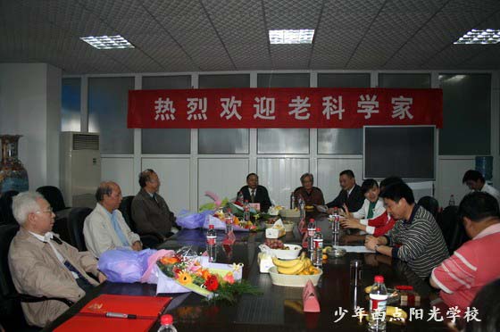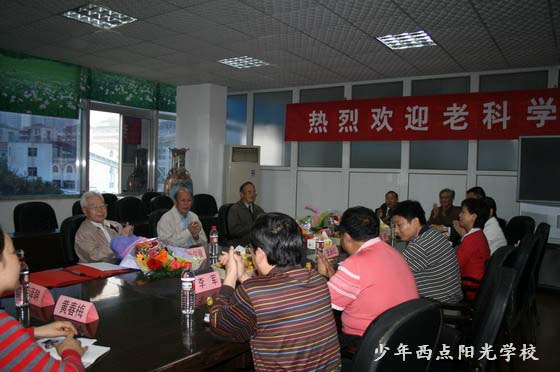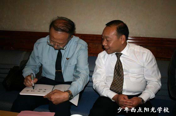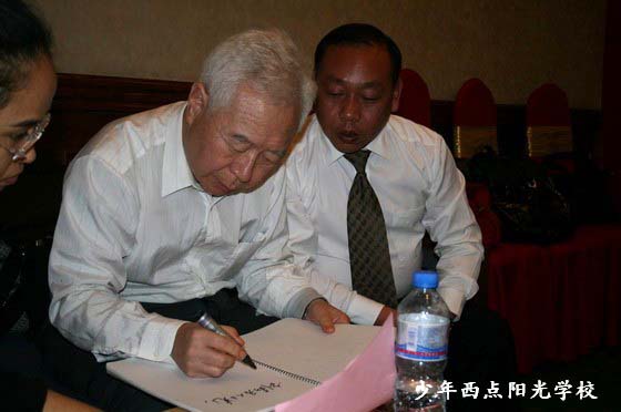 讲课完毕后,三位老科学家在宜昌国际大酒店亲切会见了少年西点阳光学校陈锋校长,陈锋校长向三位老科学家介绍了学校的情况,三位老科学家对学校办学取得的成果表示肯定,同时三位老科学家还分别为我校题词,勉励我校要坚持正确的办学方向,不断创新发展,努力为构建和谐社会多做贡献。
