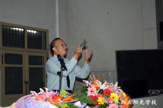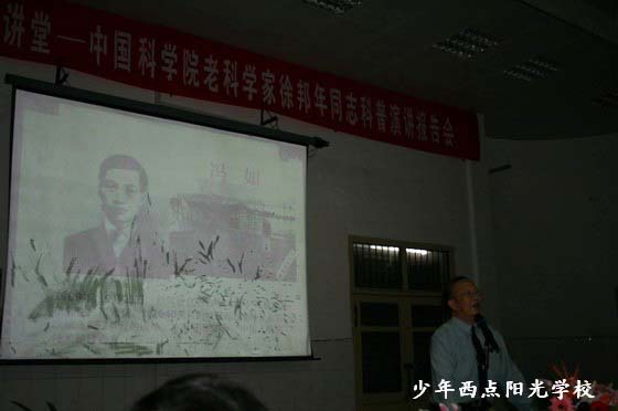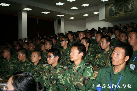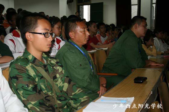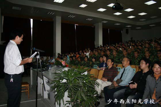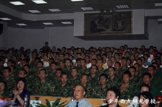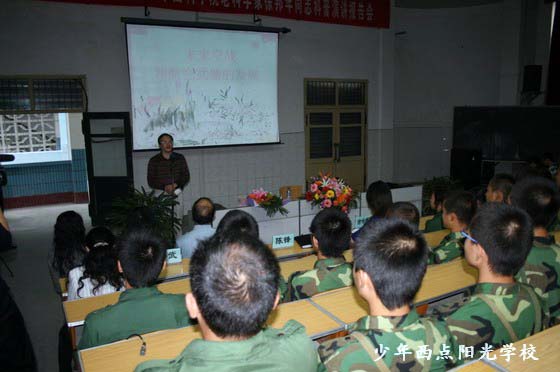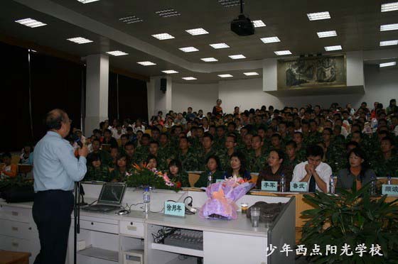 少年西点阳光学校全体师生参加的是老科学家徐邦年教授主讲的《未来空战与航空武器装备的发展》。中午1点,我校全体师生迈着整齐的步伐,用2个小时的时间,徙步行军10公里,提前来到宜昌市第五中学的听课地点。下午3点30分,身穿天蓝色军装,已过花甲的中科院普讲团老科学家徐邦年教授面带笑容,站在五中讲台上给师生们上了一堂丰富有趣的航空航天课,在课堂上徐教授还耐心解答了同学们提出的各种问题。当徐教授看到听众席上少年西点阳光学校整齐的绿色方阵时露出了赞许的目光和满意的笑容。