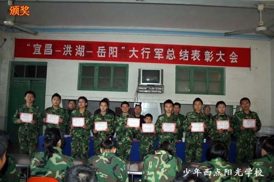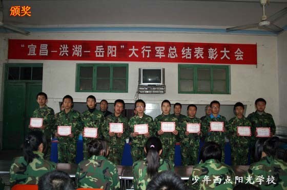 2008年12月16日上午九点,我校隆重集会举行“宜昌——洪湖——岳阳”大行军总结表彰大会。陈锋校长、党支部周书记、监察室陈主任、教育训练处刘处长、戚教授出席会议并在主席台就坐,全校教职员工和全体学员参加。会议由周书记主持,刘处长对这次大行军进行了总结,陈主任宣读了表彰通报,给获得“长征英雄”荣誉称号的学员颁发了荣誉证书,学员代表进行了精彩发言,最后陈锋校长做了重要讲话。