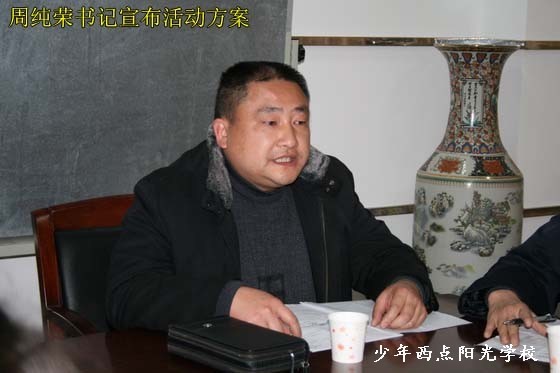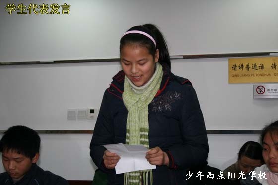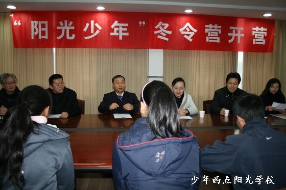 2009年1月17日上午9时,“阳光少年”冬令营开营仪式在三峡商报社11楼会议室举行,出席开营仪式的领导和专家有共青团宜昌市委任蔚副书记,三峡商报社罗庆学副总编,少年西点阳光学校陈锋校长,全国十大杰出青年、我校名誉校长宋芳蓉同志,湖北省师德标兵、省五一劳动奖章获得者、心理学专家戚道芳教授。在开营仪式上,陈锋校长致辞,罗庆学副总编代表主办方讲话,最后任书记发表了热情洋溢的讲话并宣布“阳光少年”冬令营开营。