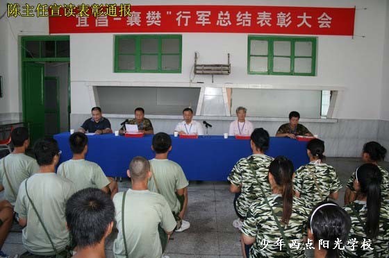 2009年6月19日上午8点30分,我校全体教职员工和学员隆重集会举行“宜昌——襄樊(古隆中)”大行军总结表彰大会。陈锋校长、党支部周书记、监察室陈主任、教育训练处刘处长、心理专家戚教授出席会议并在主席台就坐。会议由周书记主持,刘处长对这次大行军进行了总结,陈主任宣读了表彰通报,给获得“长征英雄”荣誉称号的学员颁发了荣誉证书,学员代表进行了精彩发言,最后陈锋校长作了重要讲话。
