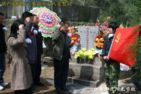 4月2日,我校党支部组织全体党员和入党积极份子,前往秭归县归州镇官庄坪村“红坟”开展了创新党日“祭扫烈士墓、重温入党誓词”的活动。祭扫活动开始,全体党员向烈士墓敬献了鲜花,党员们肃立在烈士墓碑前默哀,表达对烈士们的无限追思和怀念。党支部书记周纯荣同志引领党员们在烈士纪念碑前,面对鲜红的中国共产党党旗再次重温入党誓词。随后大家聆听了“红坟”第三代义务讲解员向立山同志讲述的“红坟”里几位烈士的英勇事迹。参加此次活动,党员们经历了党性锻炼,坚定了永远跟党走的理想信念,随行的学生代表也受到了深刻的教育。