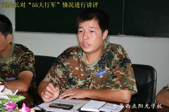 陈锋校长对此次大行军也给予了较高评价,他说这次大行军是非常成功的,学生得到了很好的锻练,学生的健康和安全得到了保证,达到了出发之前提出的“人不掉皮,车不掉漆”的要求。虽然出现了一些小的问题,但总的来说是比较满意的。陈校长对下一步学校的教育训练、管理和安全工作提出了具体明确的要求。他讲到,大行军结束后的这两天要搞好学生衣被的洗晒,搞好消毒,防止疾病发生。关于教育训练和管理工作主要抓好六件事:一是抓学生的行为习惯养成,特别要纠正学生“弯腰驼背”的问题。二是教员在对学生进行管理教育时,要按照大纲的要求去做,对学生的问题不能妥协,绝不允许有学生跟教员讲条件、讨价还价、找借口的现象发生。三是抓好满三个月的学生的文化补习工作,特别是一对一的文化补习,各班教员要根据学生本人的意愿和家长的要求,把情况及时报办公室。四是教职员工的要注意自身形象的问题。特别是教员要注意自己的衣着仪表和说话,要给学生带好头,做好样子。五是校内的安全问题。现在全国对校园安全工作都非常重视,我们每个教职工也要提高警惕,树立安全意识,保护好学生的安全和自身的安全。六是新聘教员的培训和实习要继续进行,要求新教员要端正自己的态度,向老教员学习,要多听、多看、多问。