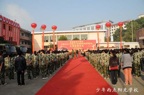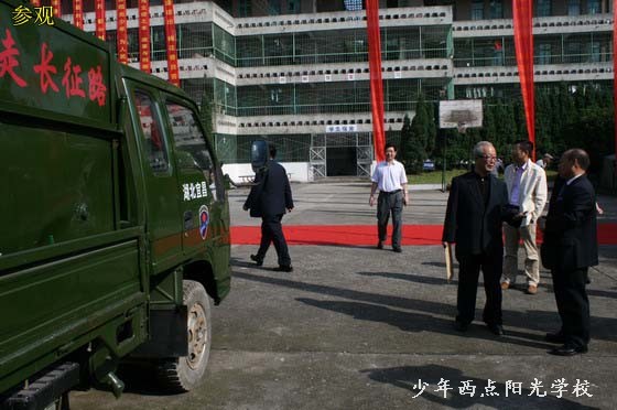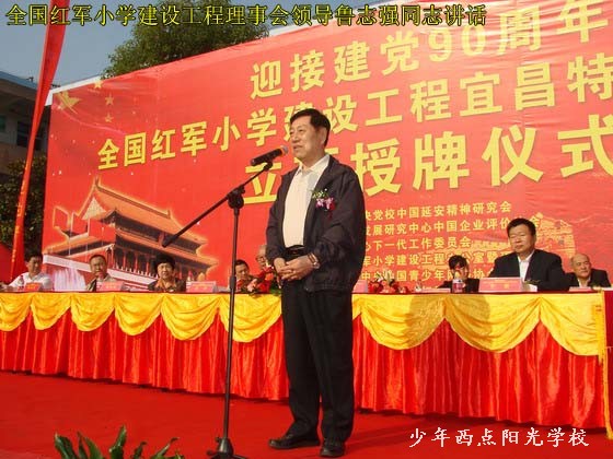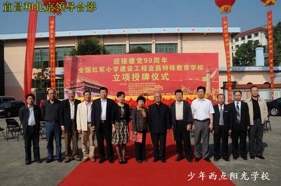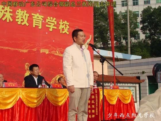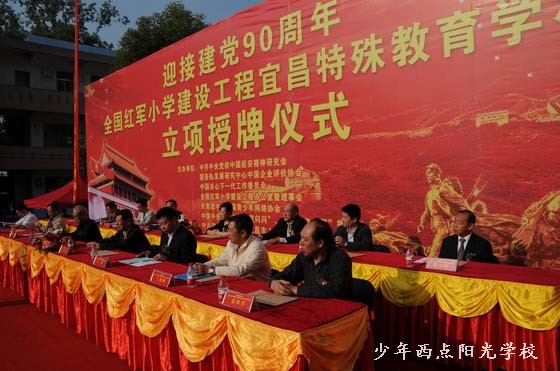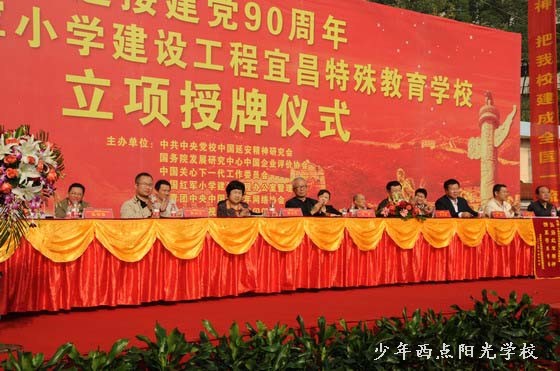 授牌仪式上,方强同志代表全国红军小学建设工程理事会宣布了“全国红军小学建设工程宜昌特殊教育学校”的立项决定,贾祥同志给宜昌少年西点阳光学校授牌、授旗,鲁志强同志发表了重要讲话。廖达凤同志代表宜昌市委、市政府致欢迎辞。中国移动通信集团广东有限公司副总经理兰先生代表公司向宜昌少年西点阳光学校捐赠25万元人民币,用于“全国红军小学建设工程宜昌特殊教育学校”建设,宜昌少年西点阳光学校校长陈锋代表学校回赠了锦旗。仪式结束后,各位领导和学校师生进行了座谈,听取了陈锋校长的汇报,之后又兴致勃勃地参观了我校的教育训练设施和场地,对我校建设与发展给予了比较高的评价。
