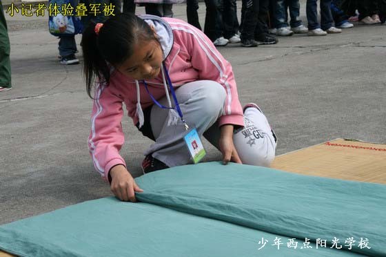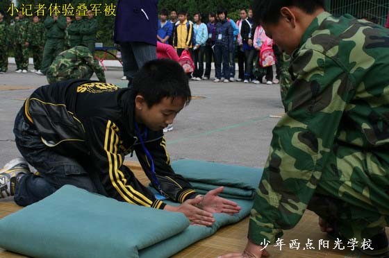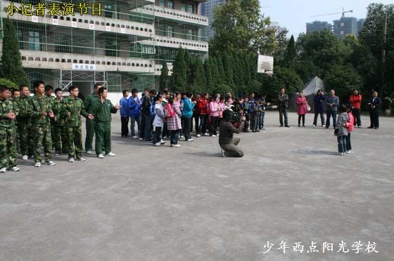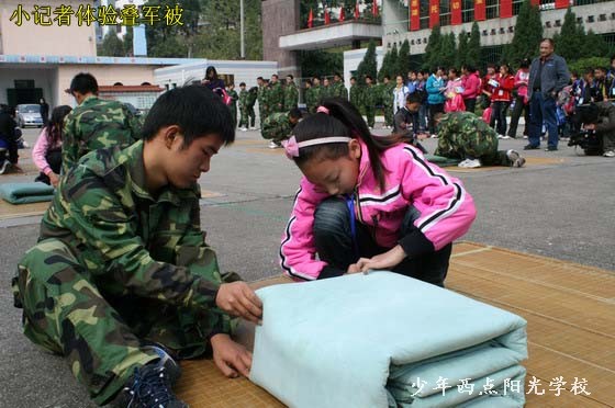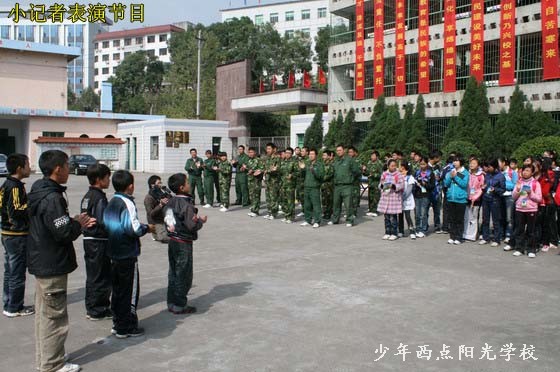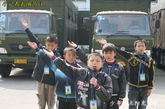今天上午,三峡晚报的60余名小记者在报社记者和学校老师的带领下来到我校,开展了一次别开生面的采风活动。陈锋校长代表我校师生致了热情洋溢的欢迎词,随后在我校教员的带领下,小记者们参观了我校展览室、行军宿营车、餐车、学生宿舍等校园设施。随后,我校学员进行的叠军被、队列、军体拳、唱红歌、背诵《弟子规》的表演深深吸引住了小记者们,让小记者们大开眼界。特别是我校学员叠的象“豆腐块”似的被子令小记者们惊叹不已,小记者们也纷纷上场体验。晚报小记者们也表演了他们精心准备的节目。午饭前,小记者们采访了陈锋校长,陈校长解答了同学们的提问,并鼓励同学们要树立远大理想和目标,努力学习,将来成为社会有用的人才。最后,小记者们在我校餐厅体验了一顿丰富而又特别的午餐。
