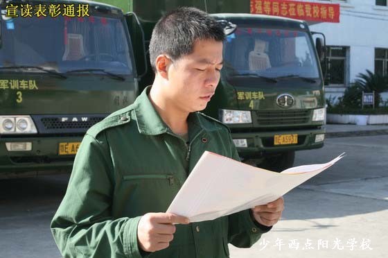 自从我校开展每周“阳光班级”和“一周之星”的评比活动以来,各班学员在教员的带领下,在教育训练和日常生活中平时表现积极,热情高涨,涌现出了一批表现突出的优秀学员代表。为表彰先进,激励广大学员自觉养成良好的思想道德品质和日常行为习惯,树立争先创优、奋发向上的精神风貌,经教育训练处推荐,校委会研究决定,授予李根、周亮、蒋明宏、曾倩亚等四名学员“阳光少年”荣誉称号。“阳光少年”的评比表彰活动将作为学校例行的重要活动每个季度开展一次,结合每周“阳光班级”、“一周之星”的评比活动进行。被授予“阳光少年”称号的学员,将由学校进行通报表彰,给学员家长寄喜报,本人照片上学校网站光荣榜。