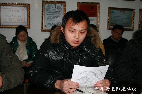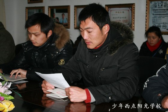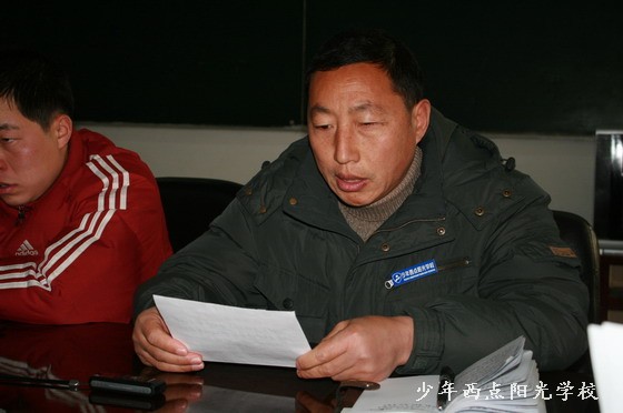 陈校长说,四名初、中级教员的述职报告讲的很好,很真实,希望他们今后多跟高级教员学习、请教争取尽快的成为一名中级教员和高级教员。陈校长说,我校2010年的干部学习、教员培训取得了很大的成效和进步,学生转变率有明显提高,全年安全事故为零。这是我们全校干部职工共同努力奋斗的结果,他还特别讲到几名学生的个案问题和学生的训练时间问题和荣誉感的问题,对2011年的工作重点作了系统部署。