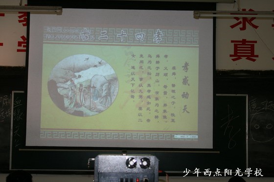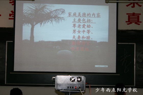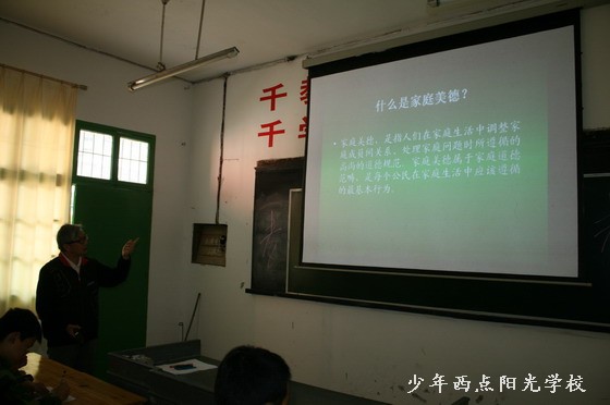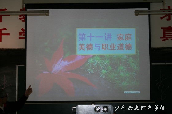 戚教授先向同学们解释了家庭美德的含义,希望每一个成长中的青少年要正确理解其含义。接着,戚教授重点谈到了家庭美德的五个内容:尊老爱幼、男女平等、夫妻和睦、勤俭持家、邻里团结。戚教授真诚地希望每个同学要牢牢记住这五个方面,并从小要按照我国这五个要求规范自己的行动。这堂课最后,戚教授向同学们介绍了我国家庭美德的优秀传统故事“二十四孝”,并给大家展示了“二十四孝图”。