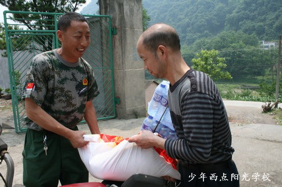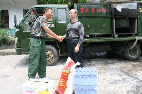远足拉练是我校教育训练的必修课。在行军拉练途中,由于受客观条件的限制,会遇到诸多困难,但我校前线行军指挥部都能安全圆满地完成每次行军任务,这其中就因为有很多学生家长和沿途广大人民群众对我们的支持和帮助。这种支持和帮助,不仅令我们前线行军的工作人员很受感动,更是让全线行军学生受到了生动的教育,使他们懂得了关心帮助他人。2011年5月28日,我校远足拉练部队行军到湖北长阳,我校毕业学员覃知的家长得知消息后,特意驱车到行军部队慰问并送来了大米、香蕉和矿泉水。在此,行军前线指挥部代表全体师生对这位学员家长的行为表示崇高的敬意和衷心的感谢!