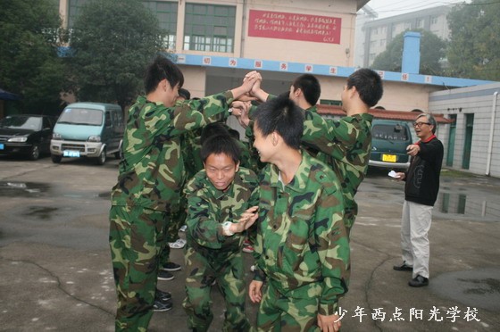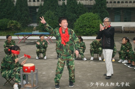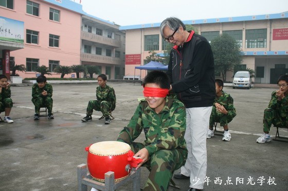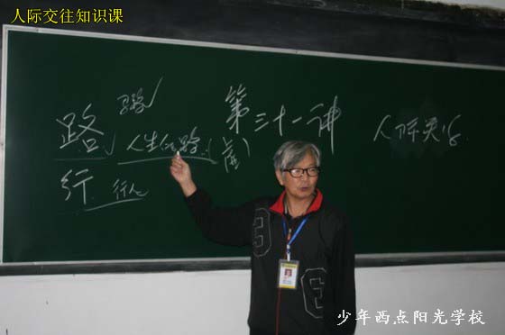 10月12日星期三,学生的思想品德教育课程分两步进行:第一步同学们集合在学校操场上,由戚教授组织同学们开展心理素质拓展训练;第二步,在室内进行由戚教授讲授人际交往知识。