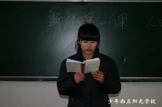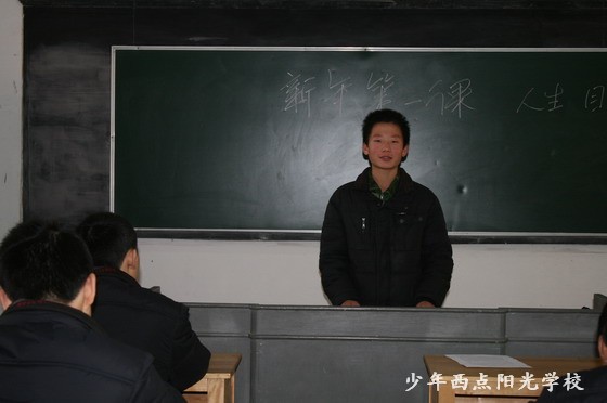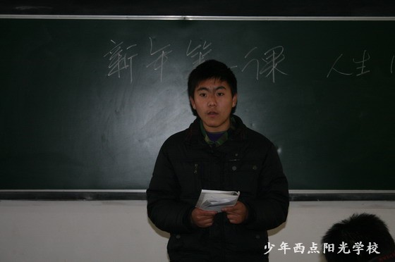 最后,戚教授组织全体同学分别上台发言,谈新年新目标。同学们的发言很深刻,也很实际,都有明确具体的目标。如女生班韦羽浓、马婕瑜说,虽然在过去的时光里自己有了很大改变,但在新一年里仍要学会自立、自理和感恩,回报父母;男生班如李威、陈卓、黄超等同学来少年西点,改变了许多过去的不良习惯,但要进一步努力;李少儒、任泽路、王子敬等同学表示新一年里,一定听教员老师的话,完成所有训练,做优秀学生。