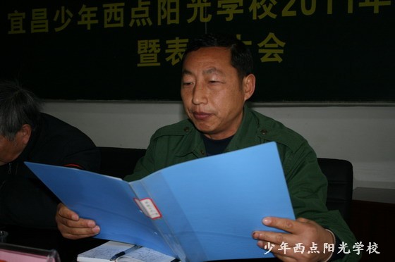 大会开始,先由陈锋校长向参加大会的全校教职员工进行了“2011年度工作总结报告”。陈校长在认真回顾过去一年的工作中,明确指出:我们的特别教育工作有得有失,无论是得是失,我作为一校之长都应该感谢大家的共同努力与对特别教育的奉献。新一年里,要做的事情还很多,因此,还需要全体同志们:一是要重视学习,提高理论素养;二是要加强责任心,爱岗敬业;三是我们的荣誉感不得缺失。在具体工作方面,借央视对我校的宣传,我们要群策群力,把特别教育推向一个新台阶。陈校长在报告最后用真诚而感人的话说:愿新的一年成为学校辉煌的一年,我愿与大家携起手来共同打造“少年西点”,让学校更有生机与活力。