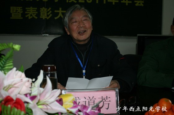 最后,学校特聘的心理学专家戚道芳教授也不无感动地讲了话。戚教授首先对陈校长当选宜昌市第五届政协委员表示了祝贺,并说这不仅是陈校长的光荣,也是我们大家的光荣,我们要在陈校长领导下,做好我们的特别教育工作。戚教授给大家提出了几点希望,希望大家在新一年里:学习教育的基本知识和理论;掌握教育的基本方法和手段;提升对特别教育的认知与情感,为此要做到,以善养心,以德养行,坚守职责,诚信做人,让宜昌少年西点阳光学校这块品牌坚挺辉煌!