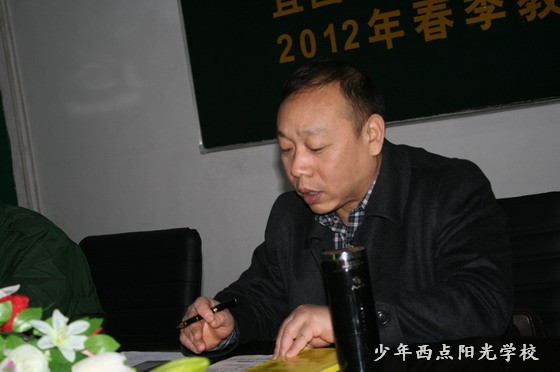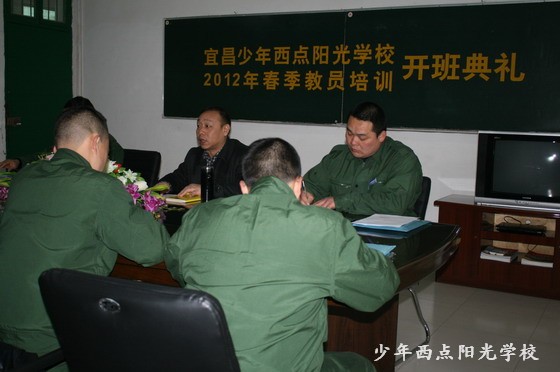 2月13日上午,在我校二楼展览大厅举行了“2012年春季教员培训开班仪式”。此次教员培训由我校监察室主任陈怀宝同志担任总教官,外请博士教授讲课。陈锋校长出席了开班典礼,并发表了重要讲话!陈校长讲,同志们,此次培训的目的是提高教学水平,增强责任意识,大局意识,荣誉意识,奉献意识,以敬职之德做事,以敬爱之心为学生,求真务实,努力工作,以实际行动为宜昌少年西点阳光学校增光添彩。