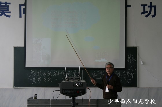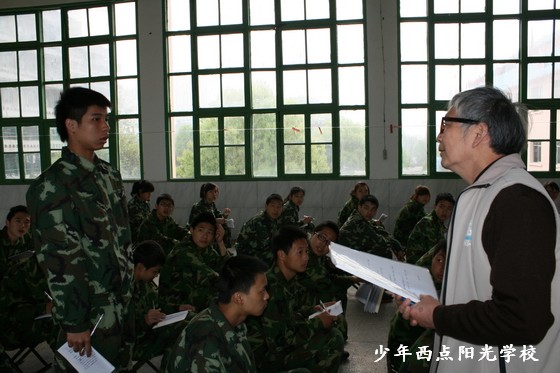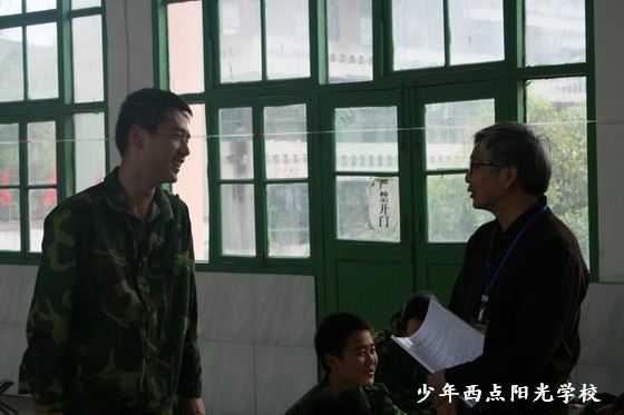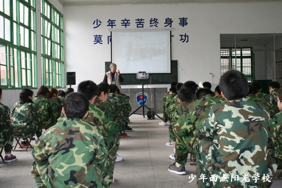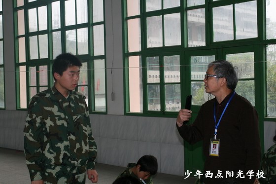 戚教授要求同学们,无论你在少年西点阳光学校还是其他的学校里学习都要听爸妈的话,好好学习,勤奋学习,学会尊重别人,讲文明,懂礼貌;要努力使自己成为有理想、有道德、有文化、有纪律的新人。