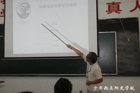 戚教授的讲课,是从在我校学习的学员屈家骏同学国旗下的演讲《做人要有目标》开始的。屈家骏同学在演讲中说:“我们是因为各种原因被父母送到少年西点阳光学校来的。父母把我们送到这儿来学习都是希望我们得到改变,而这种改变,不能一味靠教员,而是要靠我们自己。我们就应该反省一下自身的问题,再结合我们自身的情况,树立一个明确的目标。”