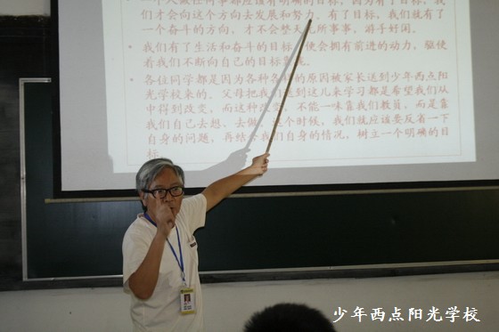戚教授对同学们讲,屈家骏同学的演讲很真诚、很实在,表达了大多数同学的心声。正如这位同学说的,一个人缺乏目标就会一事无成,有了生活的目标,便会拥有前进的动力。所以,对90年出生的这一代人来讲,明确树立和培养自己的生活目标具有很现实的意义与作用。课堂上,戚教授也询问了几位同学来少年西点之前有什么目标,他们都说没有,那么下一步有什么打算和目标呢?被问的同学一直表示说要读书、上学学习。戚教授十分高兴地肯定了他们的回答。同时也可以看出,这些原来生活迷茫的孩子来这里之后已经开始有了进步和转变。