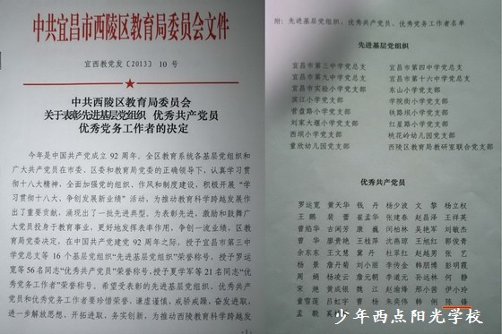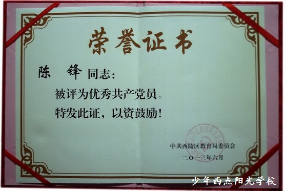 我校陈锋校长被宜昌市西陵区教育局党委评为优秀共产党员