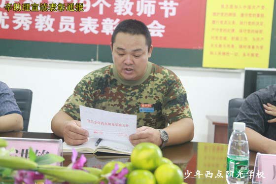 金秋九月,硕果累累。在第29个教师节来临之际,我校全体教职员工欢聚一堂,召开了教师节庆祝大会暨优秀教员表彰大会,表彰了教育训练工作中涌现出的先进个人。会上,陈锋校长代表校委会作了重要讲话,语重心长,对全校教职员工提出了新的希望和具体要求,希望广大教职员工要进一步增强工作责任感,不断加强学习,提高素质,履职尽责,扎实工作,切实把学生教育好,把学校管理好,努力把我校特别教育事业不断推向前进。