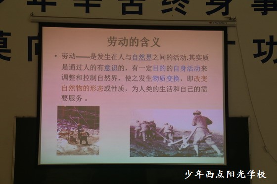 劳动——是发生在人与自然界之间的活动.其实质是通过人的有意识的,有一定目的的自身活动来调整和控制自然界,使之发生物质变换,即改变自然物的形态或性质,为人类的生活和自己的需要服务。戚教授结合大量图片给同学们讲解了劳动的含义。
