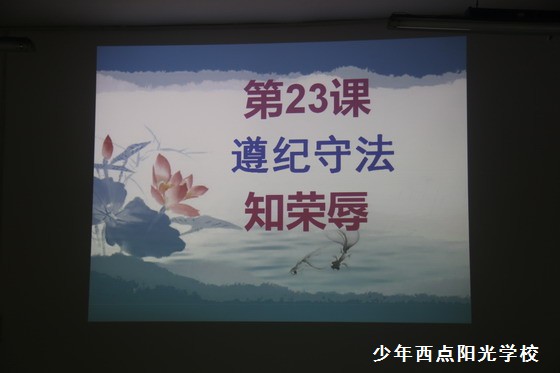 2014年7月23日,包括夏令营的全体同学在内的,同学们的思想品德课教学主题是:遵纪守法知荣辱。