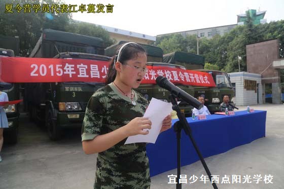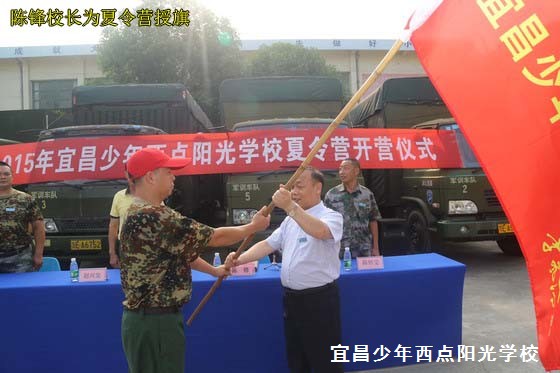 首先,陈锋校长给夏令营总指挥刘伟同志授旗,之后,刘伟同志作了夏令营动员报告,希望所有同学充分利用这一难得的学习训练机会,严格要求自己,不怕艰难困苦,锻炼能力、增长才干,快乐地度过一个有意义的暑假!江卓蔓同学作为学生代表进行了精彩发言,发言结束后带领同学们面对校旗,高举右手进行宣誓。陈锋校长对本次夏令营活动提出要求:第一,各位教员和同学要牢固树立“安全第一”的思想;第二,同学们要以严肃认真的态度参加夏令营的各项活动,认真进行各项训练,出色的完成各项学习训练任务;第三,同学们要遵守夏令营各项管理制度,转变角色,迅速适应军旅生活,个个争当优秀学员。