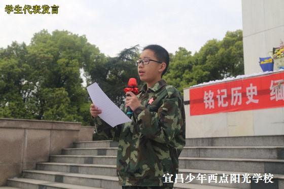 2016年3月31日上午,我校师生在辛进锋副校长的带领下,从学校出发徒步行军十公里,到达宜昌市革命烈士陵园缅怀革命先烈。共青团刘小庆老师主持活动,学校副校长辛进锋同志发表讲话,两名学生代表作了发言,师生们都在烈士碑前庄严宣誓要向革命先烈学习,学习他们热爱祖国,热爱人民,不怕牺牲、吃苦在前知难而进的精神,同学们表示要好好学习,刻苦训练,将来做一名对国家对社会有用的人。(通讯员:刘小庆)
