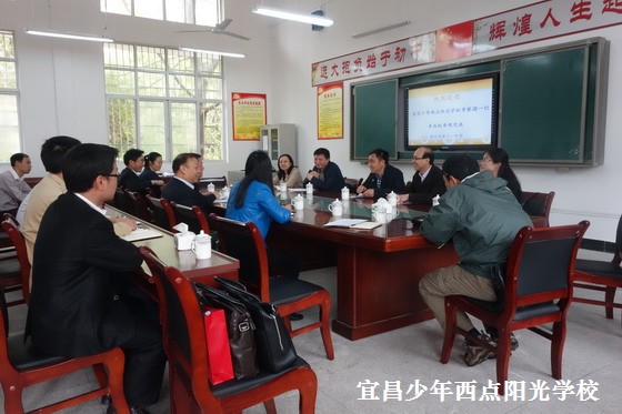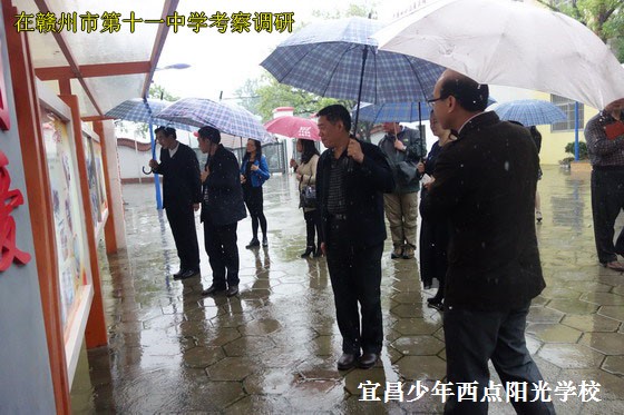 2016年4月7日至10日,宜昌市政法委综治办、市财政局、市公安局、市教育局、宜昌少年西点阳光学校赴中央政法委、中央综治办全国试点单位:江西南昌鸿杰阳光学校、江西赣州第十一中学进行实地考察。宜昌各部门对南昌、赣州两所学校办学方式、办学理念、管理方法等方面进行考察调研,并就南昌、赣州两所学校对预防青少年违法犯罪和社会综合治理工作的先进经验进行了深入交流。为更好地促进青少年素质教育和学校安全工作,陈锋校长分别对两所学校提出了宝贵建议和意见,得到了当地政府和学校的高度重视。