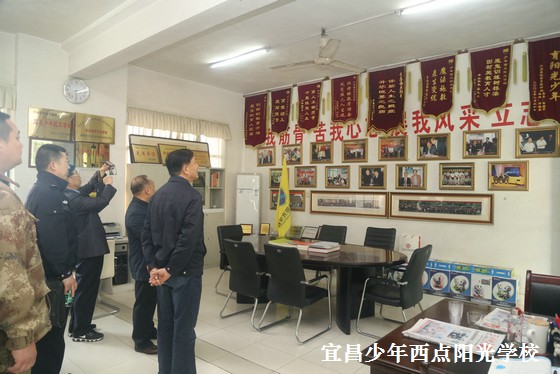 3月31日下午,湖北省政协人口资源环境委员会副主任、宜昌市原政协主席李亚隆、宜昌市公安局等领导一行来我校调研,在陈锋校长的陪同下对我校进行了实地调研,参观了学校行军拉练宿营车、行军餐车、餐厅、学生宿舍,并看望了正在操场训练的学生,之后到学校会议室听取了陈锋校长关于学校办学情况的汇报,李主席等领导对我校的办学成果给予了充分肯定, 并对学校今后的发展提出了宝贵意见。(通讯员:肖丽平)