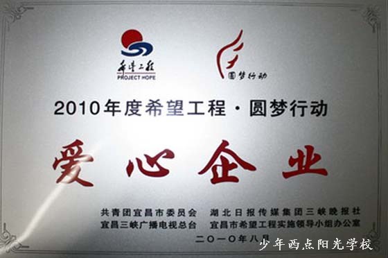 我校被评为2010年宜昌“希望工程•圆梦行动”爱心企业
