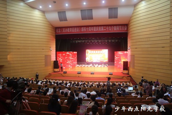 为庆祝《中华人民共和国民办教育促进法》颁布十周年和第29个教师节,2013年9月7日上午,市教育局在均瑶剧场举行了纪念和表彰大会,表彰了一批民办教育先进单位和优秀校长,我校及校长陈锋双双榜上有名,分别荣获宜昌市“民办教育先进单位”和“民办教育优秀校长”称号。会议由宜昌市政府副市长王应华主持,国家督学、湖北省民办教育协会会长曾庆红、宜昌市市委常委、宣传部部长廖达凤、市人大副主任邹正金、市政协副主席伍卫星、市教育局长苏开美等同志出席会议并讲话。廖达凤同志讲宜昌要实现大城梦,关键因素在人才,最终途径靠教育,全市上下要聚众人之智,举全市之力,尽全民之责,努力办好让人民满意的教育。